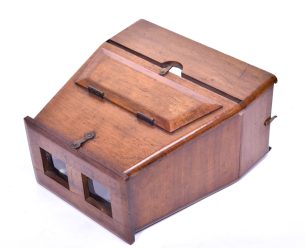 Antiq-Photo est aussi spécialiste des appareils stéréoscopiques anciens : visionneuses, cartes stéréo, vues en relief, jumelles et accessoires 3D. Nous mettons en valeur la stéréoscopie, technique d’illusion de profondeur et d’image en relief, avec des pièces rares destinées aux collectionneurs, chercheurs et amateurs de patrimoine photographique.