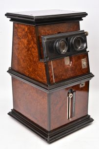 Stéréoscope 9x18 à court foyer. Vers 1885. Belle fabrication à doucines. Ébénisterie en ronce de (...)Ce produit m'intéresse -