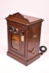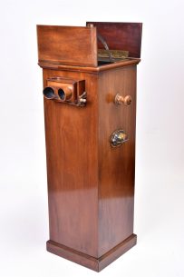 Stéréoscope musical à monnayeur. Construction en bois de cerisier ciré, de type « Américain » à chaîne, (...)Ce produit m'intéresse -