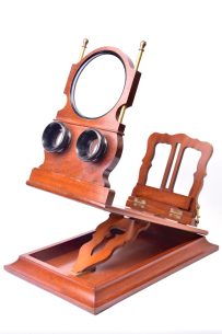 Antiq-Photo est aussi spécialiste des appareils stéréoscopiques anciens : visionneuses, cartes stéréo, vues en relief, jumelles et accessoires 3D. Nous mettons en valeur la stéréoscopie, technique d’illusion de profondeur et d’image en relief, avec des pièces rares destinées aux collectionneurs, chercheurs et amateurs de patrimoine photographique.
