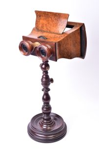 Stéréoscope en ronce de noyer sur pied en bois de palissandre tourné, vers 1880. Possibilité (...)Ce produit m'intéresse -