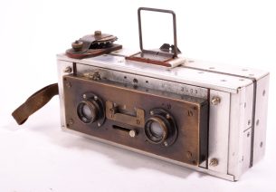 Monobloc Simplifié (M.S.). Appareil stéréoscopique utilisant le film 127. Réalisé très vraisemblablement, à partir d’un (...)Ce produit m'intéresse -