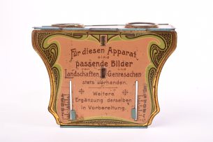 Petite visionneuse stéréoscopique publicitaire « Imperial ». Construite en tôle lithographiée aux motifs polychromes « (...)Ce produit m'intéresse -