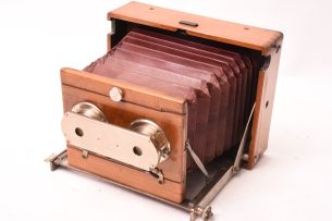 Chambre pliante stéréoscopique extra-plate. Format 13x18 cm. Construction du corps arrière en acajou blond verni. (...)Ce produit m'intéresse -