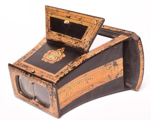 Stéréoscope Victorien en papier mâché, de type Brewster. Il est rehaussé de motifs décoratifs polychromes. (...)Ce produit m'intéresse -