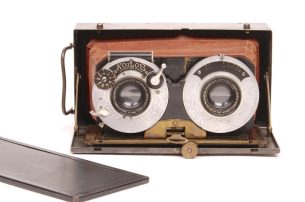 Antiq-Photo est aussi spécialiste des appareils stéréoscopiques anciens : visionneuses, cartes stéréo, vues en relief, jumelles et accessoires 3D. Nous mettons en valeur la stéréoscopie, technique d’illusion de profondeur et d’image en relief, avec des pièces rares destinées aux collectionneurs, chercheurs et amateurs de patrimoine photographique.