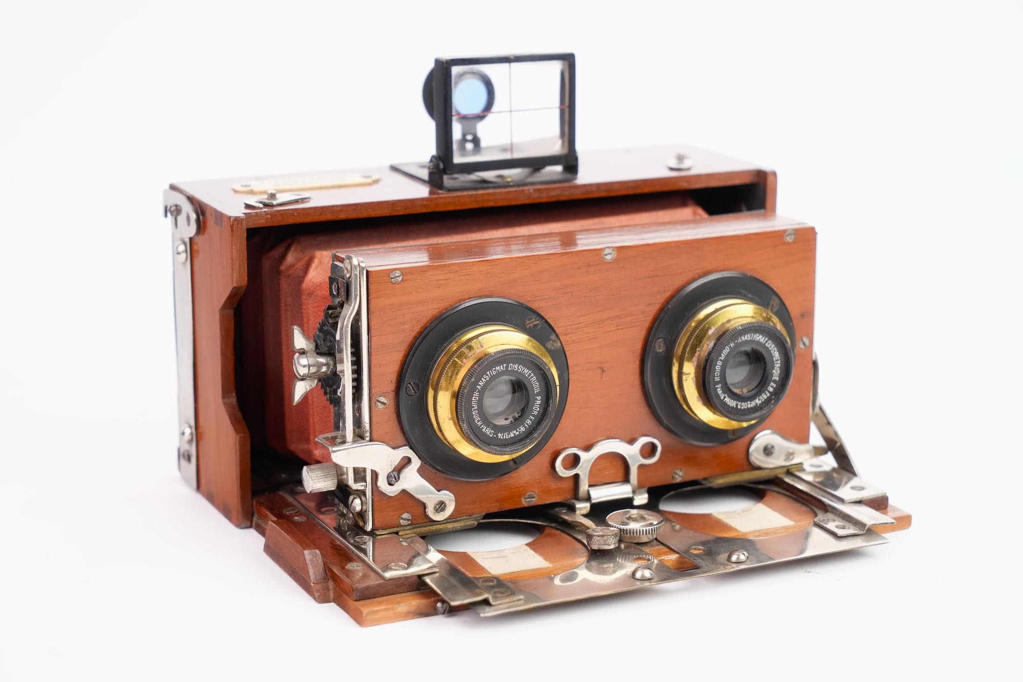 Rare appareil photographique stéréoscopique 6x13 cm. Optiques Duplouich